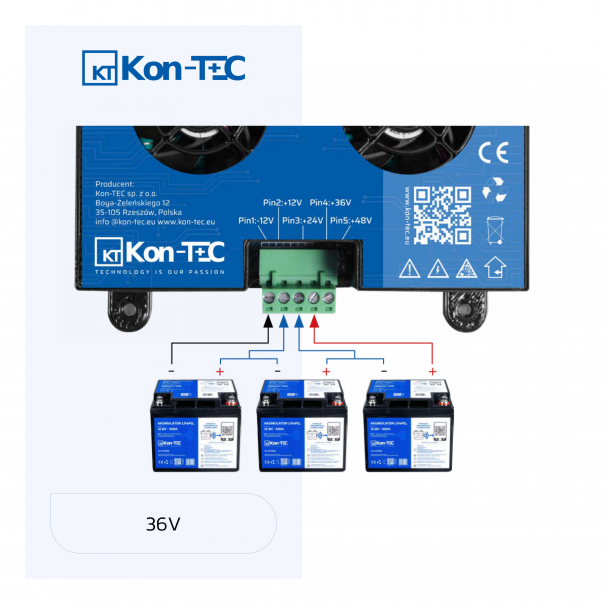 Łączenie szeregowo akumulatory 12V LiFePO4, trzy akumulatory do napięcia 36V.